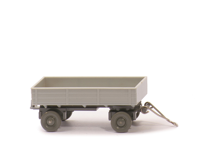 | Pritsche | Pritsche Farbe | silbergrau | Pritschenseiten | mit Struktur | Pritscheneinlage | ohne | Kennzeichen hinten | zweiteilig | | Chassis | Chassis Variante | Typ 2 | Chassis Farbe | basaltgrau | Achshalterungen | offen | Drehschemel | eingesteckt | Bodenprägung Drehschemel | WM | Bodenprägung Chassis | ohne | Zughaken | silbern, Typ LKW, unter Chassis geklebt | | weitere Details | Deichsel | Metall | Bemalung Rückleuchten | rot | Bemalung Kennzeichen | silbern | Räder | 10 mm, staubgrau, neuere Ausführung |