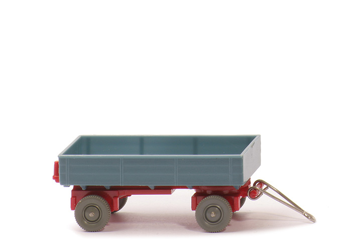| Pritsche | Pritsche Farbe | mattgraublau | Pritschenseiten | mit Struktur | Pritscheneinlage | silbern | Kennzeichen hinten | einteilig | | Chassis | Chassis Variante | Typ 4 | Chassis Farbe | rot | Achshalterungen | offen | Drehschemel | eingesteckt | Bodenprägung Drehschemel | ohne | Bodenprägung Chassis | Germany | Zughaken | ins Chassis integriert | | weitere Details | Deichsel | Metall | Bemalung Rückleuchten | ohne | Bemalung Kennzeichen | ohne | Räder | 10 mm, staubgrau, neuere Ausführung |