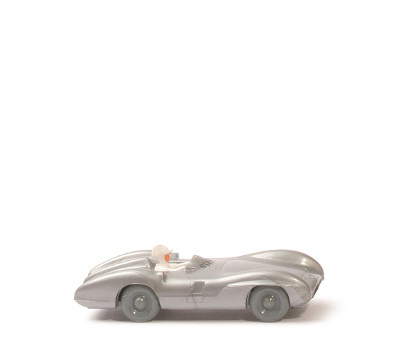 Farbe Karosserie | silbern | Grill | fein | Fahrer | weiß | Bemalung Fahrer | Gesicht | Chassis Typ | neu | Chassis Farbe | silbern | Bodenprägung | neues WIKING-Logo, Mercedes Rennwagen, MiG | Räder | 8mm, ca. staubgrau |