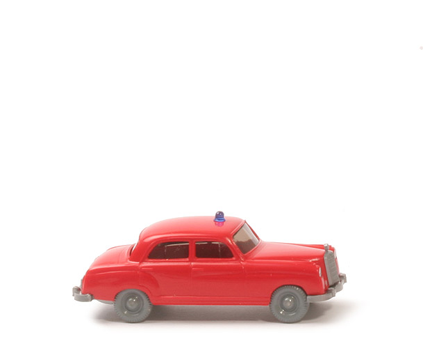 Farbe Karosserie | "verkehrsrot" | Blaulicht | auf Dach verklebt | Bedruckung vorne | Scheinwerfer, Nebelscheinwerfer silber | Bedruckung Rückleuchten | ohne | Grill | silbern, eingesetzt, Neuauflage | Stern | größer als beim Original | Verglasung | stark getönt | Inneneinrichtung | ohne | Chassis Farbe | silbern | Bodenprägung | neues WIKING-Logo, WM, Merc. 220 | Räder Typ | 8 mm, Nabe gewölbt | Räder Farbe | ca. staubgrau |