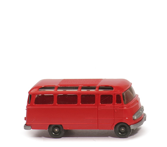 | Farbe | rot | | Rückleuchten | stark erhaben | | Grill | silbern eingesetzt | | Verglasung | leicht getönt | | Inneneinrichtung | ohne | | Chassisfarbe | silbern | | Bodenprägung | neues WIKING-Logo, Germany | | Bemalung Scheinwerfer | ohne | | Bemalung Rückleuchten | ohne | | Räder Typ | 8 mm, Nabe glatt | | Räder Farbe | anthrazit |