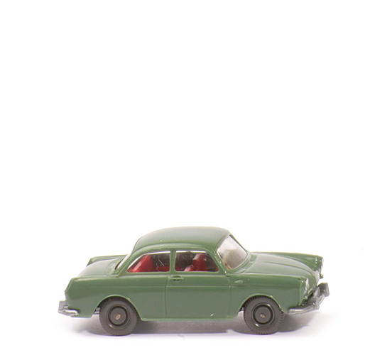 Farbe | diamantgrün | Haube | gerundet | Blinker vorne | Pickelblinker | Verglasung | klar | Inneneinrichtung | mit, rot | Lenkrad | separat eingesetzt, ca. perlweiß | Bemalung Scheinwerfer | silber | Bemalung Rückleuchten | ohne | Chassisfarbe | silbern | Chassis Typ | Version 3: m. Hörner, 3 Stege | Bodenprägung | MiG, VW 1600, WM | Haltestreben Stoßstange | je drei | Stoßstangenhörnchen | mit | Räder Typ | 7 mm, Nabe glatt | Räder Farbe | ca. anthrazit |