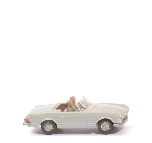 Farbe Karosserie | silbergrau | Windschutzscheibe | separat eingeklebt | Scheinwerfer | klar eingesetzt | Unterlegung der Scheinwerfer | silbern | Vordersitze | olivgrau | Rückenlehne Notsitze | olivgrau | Figuren | ca. platingrau | Lenkrad Art | separat eingesetzt, 2-speichig | Lenkrad Farbe | ca. silbergrau | Chassis Typ | vorne geschlossen | Chassis Farbe | silbern | Achshalterungen | einfach | Bodenprägung | Wiking, 14b, Germany | Bemalung Grill | silber | Bemalung Rückleuchten | orange | Bemalung Kennzeichen hinten | ohne | Räder | Riffelkappe, Felge gesilbert |