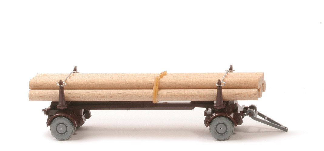Kotflügel | schokobraun | Rungen | schokobraun | Aufbau | schokobraun | Prägung Aufbau Oberseite | neues WIKING.Logo - Made in Germany | Bodenprägung Aufbau | ohne | Drehschemel | schokobraun | Deichsel | Kunststoff, anthrazit, kleiner Öffnung | Bemalung | ohne | Beladung | 7 Rundhölzer | Befestigung der Ladung | Drahtschlaufen | Bereifung | doppelt | Räder Typ | 11 mm, Standard 6-Loch, Profil fein | Räder Farbe | ca. staubgrau |