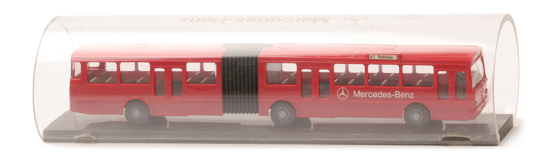 Farbe Karosserie | rot | Bemalung vorne | Scheinwerfer silbern | Verglasung | klar | Gelenkbereich | schwarzer Weichkunststoff | Sitze | braungelb | Fahrer | ca. basaltgrau | Fahrer Typ | Standard-Busfahrer | Bemalung Fahrer | Gesicht | Lenkrad | anthrazit | Bemalung Heck | ohne | Chassis Farbe | anthrazit | Chassis Typ | mit Trapez | Bodenprägung | WIKING, Berlin-W | Räder | 12mm, Profil grob | Radkappen | silber | Zielangaben | 6 | Rathaus | Beschriftung | Stern, Mercedes-Benz | Beschriftung Art | Druck weiß | Röhre | klar transparent | hier Druck oben | Stern, "Mercedes-Benz" | Sockel | rauchtransparent |