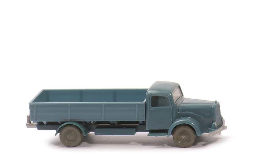 Farbe Kabine | mattgraublau | Version Kabine | ohne Schlitz hinter Nrn-Schild | Blinker | ohne | Verglasung | getönt | Bemalung | Scheinwerfer, Stoßstange | Chassis Farbe | diamantblau | Chassis Art | Version 2 | Achshalterungen | geschlossen | Chassis Bodenprägung | WM im Kreis | Zughaken | silbern, im Kipperschlitz | Rückleuchten am Chassis | ohne | Pritsche Art | Normpritsche | Pritschenseiten | waagerechte Gravuren | Rückleuchten | eingerückt | Kennzeichen | zweiteilig | Pritsche Farbe | mattgraublau | Pritscheneinlage | ohne | Bemalung Rückleuchten | rot | Bemalung Kennzeichen | silber | Räder | 10mm, ältere Version |