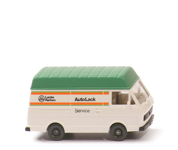 | Farbe Karosserie | weiß | | Grill | schwarz eingesetzt | | Scheibenwischer | mit | | Außenspiegel | mit | | Verglasung | klar | | Inneneinrichtung | Sitze nur eine Reihe, Lkr integriert | | Farbe Inneneinrichtung | ca. rotelfenbein | | Chassis Farbe | schwarz | | Bodenprägung | VW-LT 28 Wiking Berlin-W | | Hochdach | grün | | Beschriftung | ICI ... (s. Foto) | | Beschriftung Art | Druck grün, orange und schwarz | | Bemalung vorne | ohne | | Bemalung hinten | ohne | | Räder | Standard PKW | | Felgen | unbemalt |