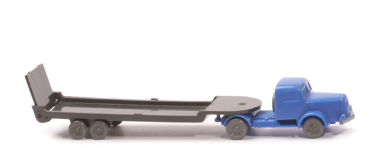 Achsen | Rollachser | | Zugmaschine | Farbe Kabine | ultramarin | Farbe Chassis | ultramarin | Bemalung | Scheinwerfer, Stoßstange | Sattelpfanne | eingesetzt, in Chassisfarbe | Chassis | Version 1a | Achshalterungen | geschlossen | Bodenprägung | WM (ohne Kreis) | Reserverad | hinter Kabine | Räder | 10mm, ohne Profil, basaltgrau | | Auflieger | Achsen | Rollachser | Farbe | anthrazit | Typ | vorn rund (Typ 1) | Seilwinde | ohne | Fläche über Drehschemel | mit Prägung WM im Kreis | Rückleuchten | ohne | Rampe | kurz | Stützen | ohne | Bodenprägung | ohne | Königsbolzen | kurz | Räder | 8mm, o. Profil, (dunkel-) basaltgrau |