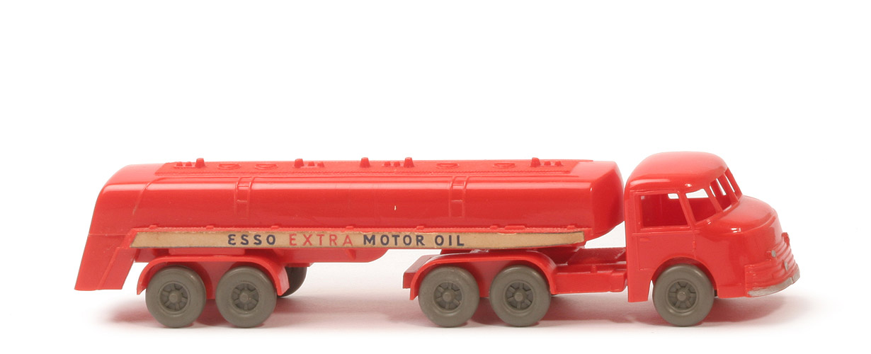 | Zugmaschine | Verglasung | ohne | Kabine Farbe | orangerot | Chassis Farbe | orangerot | Kabinenrückwand | ohne Haltenasen | Bemalung | Scheinwerfer, Stoßstange | Bodenprägung Chassis | WM ohne Kreis | vordere Auswerfermarkierung | 3 mm | hintere Auswerfermarkierung | 2 Stück | Achshalterungen | geschlossen | Sattelpfanne | integriert | Reserverad | ohne | Rückleuchten | ohne | Räder vorn | Version 5 - betongrau | Räder hinten | Version 5 - betongrau | | Auflieger | Farbe Korpus, Unterteil | orangerot | Farbe Achseinheit | orangerot | Königsbolzen | dünn, integriert | Bodenprägung Unterseite | WM im Kreis | Bodenprägung Achseinheit | ohne | Typ Achshalterung | gerade, geschlossen | Reserverad | ohne | Rückleuchten | ohne | Beschriftung Seite | Papieraufkleber | Länge / Art | 46mm / EXTRA in rot | Beschriftung Heck | Papieraufkleber | Rand | schmal | Bemalung Nummernschild | silber | Räder | Version 5 - betongrau |