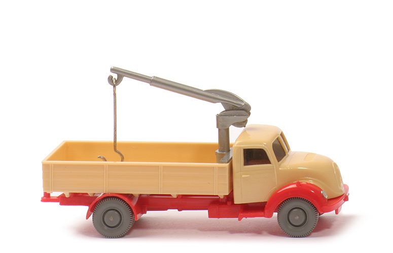 Farbe Kabine | hellbeige | Verglasung | getönt | Bemalung vorn | nur Scheinwerfer | Chassis Farbe | orangerot | Chassis Art | 2. Version | Kupplung vorn | mit | mittlerer Chassisbereich | geschlossen | Chassis Bodenprägung | WM | Pritsche Art | Normpritsche | Pritschenseiten | waagerechte Gravuren | Rückleuchten | bündig an Rückwand | Kennzeichen | einteilig | Pritsche Farbe | hellbeige | Pritscheneinlage | ohne | Ladekran | alle Teile silbern | Bemalung Rückleuchten | rot | Bemalung Kennzeichen | ohne | Räder | 11 mm glatt |