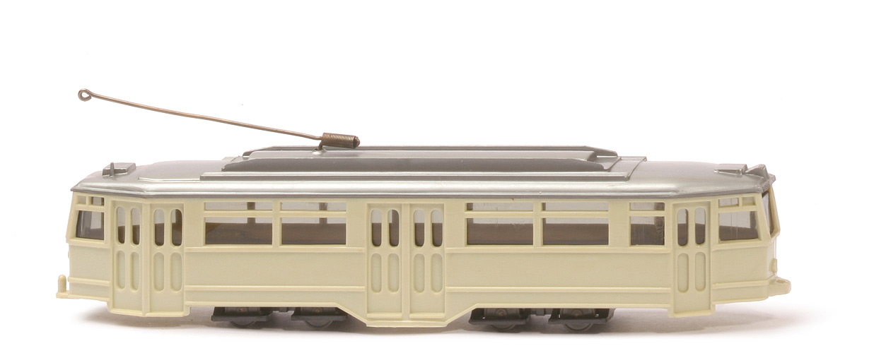 Karosserie Farbe | hellgrünbeige | Karosserie Bodenprägung | WM im Kreis | Zughakenloch vorne | mit Schlitz | Verglasung | leicht getönt | Farbe Dach | silbern | Stromabnehmer | Draht, mit Feder | Acheinheiten Typ | ohne seitliche Verstärkung | Achseinheiten Bodenprägung | ohne | Achseinheiten Farbe | anthrazit | Rader Typ | 7 mm, Scheibenräder | Räder Farbe | ca. basaltgrau | Bemalung | ohne | Beschriftung | ohne |