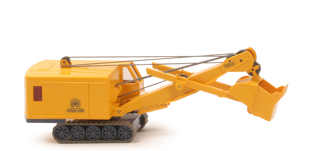 Oberwagen Oberteil | helles chromgelb | Oberwagen Unterteil | helles chromgelb | Verglasung | klar, IE anthrazit | Unterwagen Oberteil | ca. enzianblau | Unterwagen Unterteil | ca. enzianblau | hier Bodenprägung | neues WIKING-Logo | Ausleger | helles chromgelb | Löffelstiele | helles chromgelb | Baggerlöffel | helles chromgelb | Laufrollen für Seilzugmechanik | anthrazit | Laufräder | 6,5 mm 8-Stern-Felge, ca. enzianblau | Gummiraupen | ca. basaltgrau | Verseilung | Gummi staubgrau | Beschriftung Oberwagen Seite | "Menck-Hambrock, Hamburg Altona", ca. enzianblau | Beschriftung Oberwagen Heck | "Menck", ca. enzianblau | weitere Beschriftung Oberwagen | ohne | Beschriftung Ausleger | "Menck", ca. enzianblau |