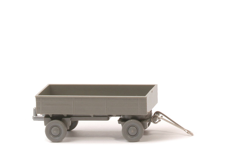 | Pritsche | Pritsche Farbe | betongrau | Pritschenseiten | Struktur | Pritscheneinlage | beige | Kennzeichen hinten | zweiteilig | | Chassis | Chassis Farbe | betongrau | Chassis Variante | Typ 1 | Achshalterungen | geschlossen | Drehschemel | vernietet | Bodenprägung Drehschemel | ohne | Bodenprägung Chassis | ohne | Zughaken | silbern, eingesetzt in Chassisschlitz | | weitere Details | Deichsel | Metall | Bemalung Rückleuchten | rot | Bemalung Kennzeichen | silbern | Räder | 11mm, Glattwand |