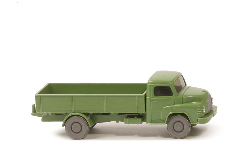 Modellversion | Typ 2 - CH geschl. , Pritsche alt | Farbe Kabine | maigrün | Verglasung | getönt | Grill | silbern eingesetzt | Bemalung | Scheinwerfer, Nummernschild | Inneneinrichtung | ohne | Haltenasen Kabine | ohne | Chassis Art | Typ 2 | Bodenprägung | nur WM | Bereich Kardan hinten | geschlossen | Rücklichtstange | ohne | Pritschenabstützung | punktuell | Arretierung Haltenasen | ohne | Chassisfarbe | maigrün | Pritsche Art | Normpritsche | Pritschenseiten | waagerechte Gravuren | Farbe Pritsche | maigrün | Rückleuchten | eingerückt | Kennzeichen | zweiteilig | Pritscheneinlage | ohne | Bemalung Rückleuchten | rot | Bemalung Kennzeichen | ohne | Räder | 10 Loch |