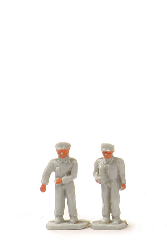 Figurenzahl | 2 | Farbe | lichtgrau | Bemalung | Gesichter und Hände | | Figuren von links nach rechts | Figur 1 | rechter Arm freistehend | Figur 2 | mit Kanister unter dem rechten Arm |