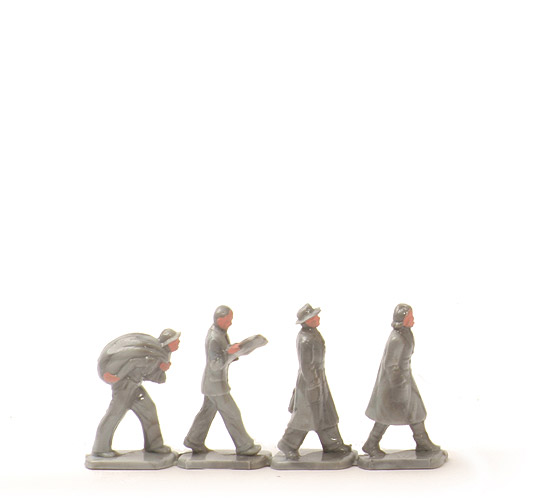 | Figurenzahl | 4 | | Farbe | basaltgrau meliert | | Bemalung | Gesichter und Hände | | | Figuren von links nach rechts | | Sackträger | Sack über rechter Schulter | | Herr 1 | Zeitung lesend | | Herr 2 | rechte Hand in Manteltasche, links Aktentasche | | Dame | beide Hände in Manteltaschen |
