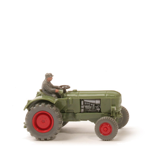 Aufbau | dunkelmaigrün | Vorderachsportal | dunkelmaigrün | Unterbau | dunkelmaigrün | BP hinter Vorderachse | Germany | Fahrersitz | dunkelmaigrün | Scheinwerfer | klein (ca. 2 mm), silbern bemalt | Motorblock | silbern eingesetzt | Lenkrad Typ | ca. anthrazit, 4-speichig | Lenkrad Position | waagerecht | Fahrer | ca. basaltgrau | Zughaken | groß | Rückleuchten | unbemalt | Kamin | ohne | Dachhalterungen auf Kotflügel | ohne | Dach | ohne | Vorderräder | 11 mm, ca. basaltgrau, Profil grob | Felgen vorne | 6-Loch, rot | Hinterräder | 17 mm, ca. basaltgrau | Felgen hinten | rot |