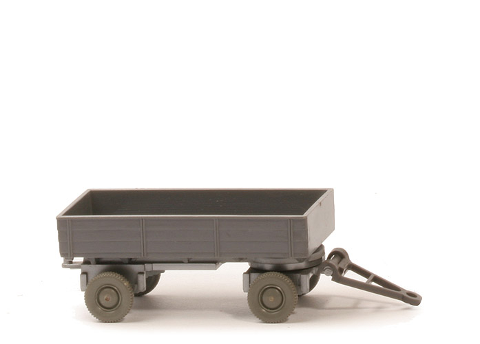 | Pritsche | Pritsche Farbe | basaltgrau | Pritschenseiten | mit Struktur | Pritscheneinlage | beige | Kennzeichen hinten | einteilig | | Chassis | Chassis Variante | Typ 2 | Chassis Farbe | silbern | Achshalterungen | offen | Drehschemel | eingesteckt | Bodenprägung Drehschemel | WM | Bodenprägung Chassis | ohne | Zughaken | silbern, Typ LKW, unter Chassis geklebt | | weitere Details | Deichsel | Kunststoff, anthrazit | Bemalung Rückleuchten | ohne | Bemalung Kennzeichen | ohne | Räder | 10mm, mit Profil, ca. basaltgrau |