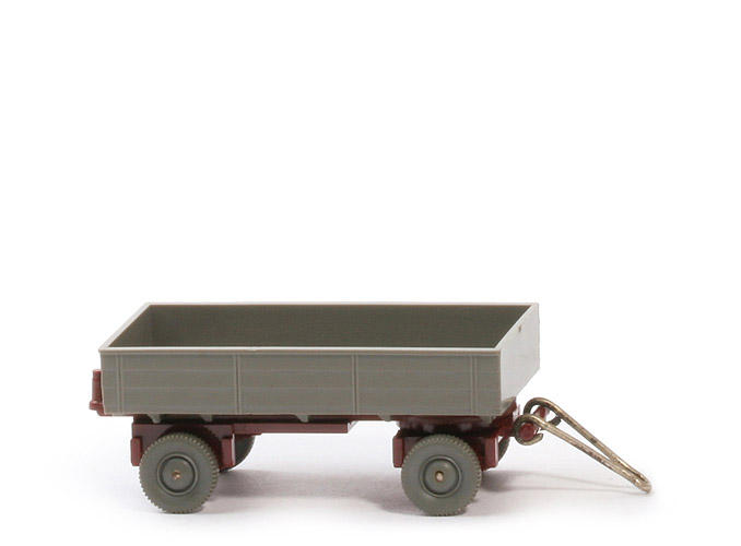 | Pritsche | Pritsche Farbe | betongrau | Pritschenseiten | mit Struktur | Pritscheneinlage | ohne | Kennzeichen hinten | einteilig | | Chassis | Chassis Variante | Typ 4 | Chassis Farbe | rotbraun | Achshalterungen | offen | Drehschemel | eingesteckt | Bodenprägung Drehschemel | ohne | Bodenprägung Chassis | Germany | Zughaken | ins Chassis integriert | | weitere Details | Deichsel | Kunststoff anthrazit | Bemalung Rückleuchten | ohne | Bemalung Kennzeichen | ohne | Räder | 10 mm, neuere Version |