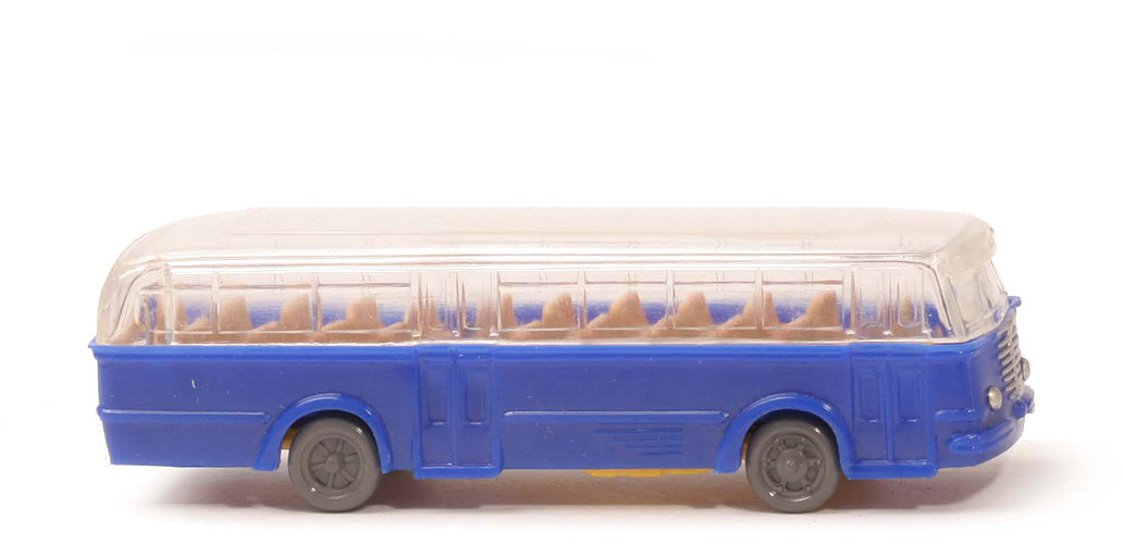 | | Karosserie | | Typ Karosserie | Typ 1 | | Farbe | dunkelultramarin | | Scheinwerfer | konvex | | Grill | alt | | unterer Türabschluss | tiefer als Karosserie | | angedeutete Fenster in Türen | gerundet | | Heck | Version 1 | | Heckbeschriftung BÜSSING | dünn, die beiden "S" so groß wie Restschrift | | Rückleuchten | ohne | | Nummernschild hinten | ohne | | Bodenprägung | ohne | | Chassishalterungen | eckig | | | Dach | | Typ Dach | glatt, ohne Lüfter | | Fenster | gewinkelt | | | Inneneinrichtung | | Typ Inneneinrichtung | Sitze grob | | Farbe | ca. beige | | Lenkrad | an Karosserie | | Lenkrad Farbe | weiß | | Fahrer | ohne | | | Chassis | | Bodengruppe | Typ 1 | | Chassis Farbe | blassgelb | | | Räder | | Typ | Trilex | | Farbe | basaltgrau |