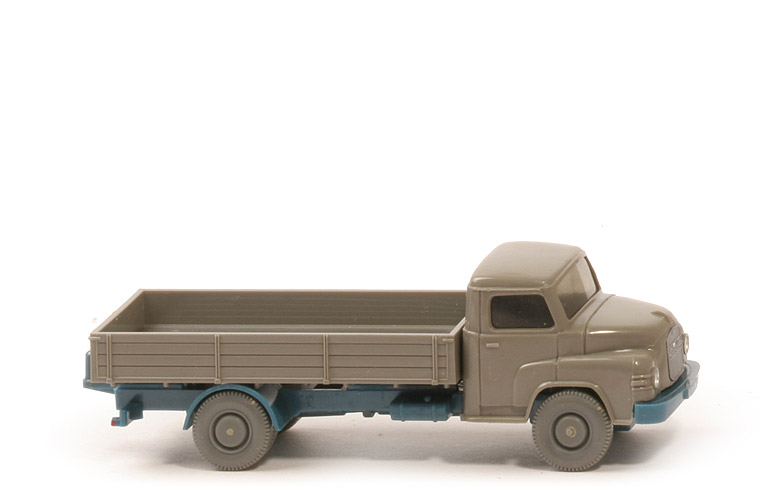 | Modellversion | Typ 3 - Chassis neu, Pritsche neu | | Farbe Kabine | betongrau | | Verglasung | getönt | | Grill | silbern eingesetzt | | Bemalung | nur Scheinwerfer | | Inneneinrichtung | glatte Bank | | Haltenasen Kabine | mit | | Chassis Art | Typ 3 | | Bodenprägung | WM, GERMANY, 41 | | Bereich Kardan hinten | geschlossen | | Rücklichtstange | mit | | Pritschenabstützung | Stege | | Arretierung Haltenasen | mit | | Chassisfarbe | azurblau | | Pritsche Art | fein strukturiert | | Pritschenseiten | gerade, feine Struktur | | Pritschenunterseite | 6 schmale Quertraversen | | Pritsche Farbe | basaltgrau | | Pritscheneinlage | silbern | | Bemalung Rückleuchten | rot | | Plane | ohne | | Räder | 11 mm, Glattwand |