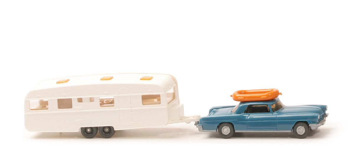 | Farbe | azurblau | | Karosserie-Typ | Form 1 | | Verglasung | stark getönt | | Befestigung der Verglasung | geklebt | | Inneneinrichtung | (immer) ohne | | Chassisfarbe | silbern | | Chassis Typ | Version 3 | | Bodenprägung | WM 21 GERMANY | | Befestigung kl. Chassisplatte | große Pass-Stifte | | Stützen für Verglasung | ohne | | Zughaken | mit | | Chassis Form-Nummer | 2 | | Bemalung Scheinwerfer | silber | | Bemalung Grill | ohne | | Bemalung Rückleuchten | ohne | | Räder Art | Standard-Riffelkappe | | Räder Farbe | anthrazit, gesilbert | | | Wohnwagen | | Corpus Farbe | weiß | | Dach Farbe | weiß | | Verglasung | klar | | Oberlichter | transparent hellgelb | | Inneneinrichtung | hellbeige | | Bedruckung | ohne | | | Boot | | Farbe | gelborange |