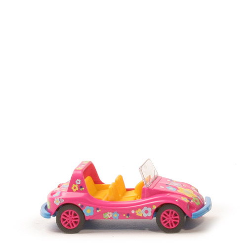 Farbe | rosa | Bedruckung Karosserie | bunte Blumen | Frontscheibe | klar, mit Scheibenwischern, eingesteckt | Inneneinrichtung | gelb | Lenkrad | integriert | Bedruckung Scheinwerfer | silber | Bedruckung Rückleuchten | ohne | Bedruckung Kennzeichen hinten | ohne | Chassisfarbe | himmelblau | Chassis Typ | Version 12 neues WIKING-Logo | Bodenprägung | neues Wiking-Logo, Germany | Stoßstange | ohne Hörner | Räder | anthrazit, 8 mm, Felgen eingesetzt | Felgen | Typ Golf IV, rosa |