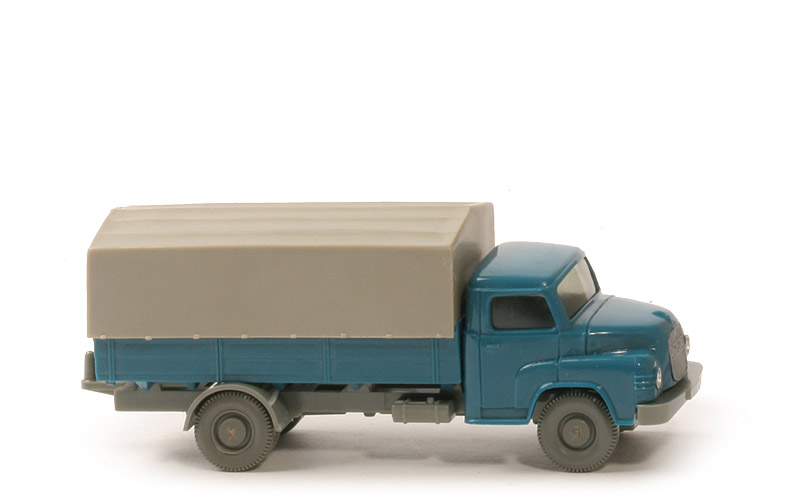Steht im GK als steingrau. Schwer zu differenzieren. Hier azurblau ohne Pritscheneinlage und Kennzeichen an Pritsche zweiteilig. Hier mit Plane. |