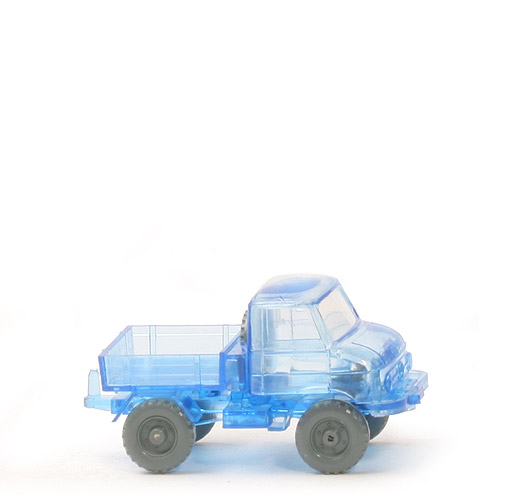 Farbe Kabine | transparent, leicht blau | Version Kabine | Dach runde Gravur | Grill | integriert, unbedruckt | Verglasung | klar | Inneneinrichtung | ohne | Aufnahme Räumschild | mit Kragen | Chassis Farbe | transparent, leicht blau | Chassis Version | im Bereich der Hinterachse geschlossen | Kardanelement Farbe | transparent, leicht blau | Bodenprägung | neues WIKING-Logo, Germany | Reserverad | hinter Kabine | Pritsche | transparent, leicht blau | Pritscheneinsatz | ohne | Räder | 10 mm, grobstollig | Farbe Räder | ca. staubgrau |