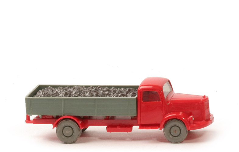 Farbe Kabine | rot | Version Kabine | mit Schlitz hinter Nrn-Schild | Blinker | ohne | Verglasung | getönt | Blinker | ohne | Bemalung | Scheinwerfer, Stoßstange | Chassis Farbe | rot | Chassis Art | Version 3b | Achshalterungen | offen | Chassis Bodenprägung | WM (ohne Kreis) und Made in .. | Zughaken | integriert | Rückleuchten am Chassis | mit | Pritsche Art | Normpritsche | Pritschenseiten | waagerechte Gravuren | Rückleuchten | bündig an Rückwand | Kennzeichen | einteilig | Pritsche Farbe | dunkelresedagrün | Pritscheneinlage | ohne | Bemalung Rückleuchten | mit | Bemalung Kennzeichen | ohne | Räder | 11mm, glatt, hellgrau |