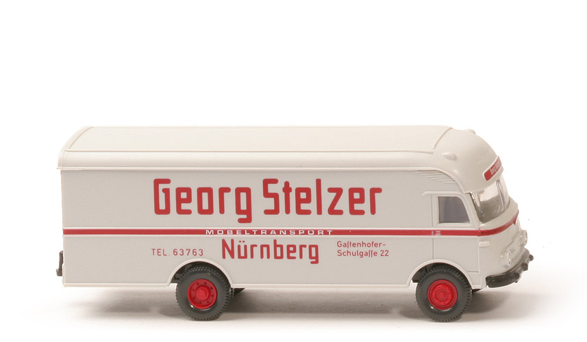 Aufbau Farbe | lichtgrau | Blinker vorne | mit | Verglasung | klar | Inneneinrichtung | ca. basaltgrau | Fahrer | ohne | Kotflügel | Teil des Aufbaus | Rückleuchten | klein | Dach Farbe | lichtgrau | Dach Art | matt, mit Positionsleuchten, mit Streben | Türen | lichtgrau | Türen Art | Typ 3: niedrig, mit Streben, mit Griff | Chassis Art | Typ 4 | Chassis Farbe | schwarz | Bodenprägung Motorblock | WM | Bodenprägung hinten | WIKING Germany | Achshalterung vorne | offen | Achshalterung hinten | offen | Fläche unter hinterem Kardan | geschlossen | Fläche hinter Hinterachse | geschlossen | Tank | ohne | Beschriftung | Georg Stelzer, ... (s. Foto) | Beschriftung Art | Druck ca. weinrot | Räder | 11 mm, 2-teilig | Felgen | 8-Loch, rot |