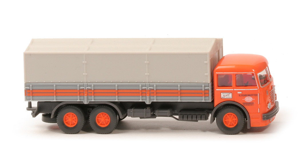 Mit Büssing-Logo über dem Kühlergrill. Die Fensterrahmen und Türgriffe sind hübsch silbern bedruckt. Die Farbangabe in Anführungszeichen ist in der Farbkarte von Holger Wanner nicht notiert. |