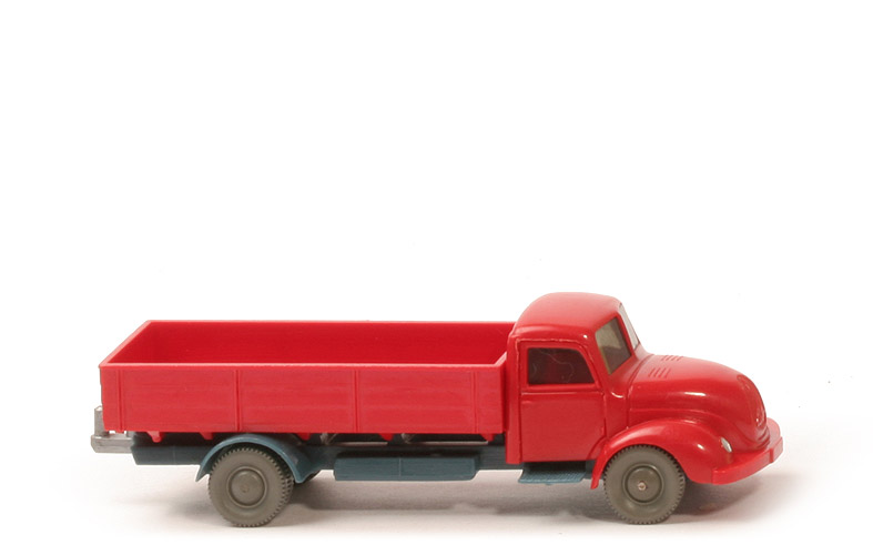 Farbe Kabine | rot, | Version Kabine | Typ 4 | Stoßstange | gerade | Kabinenboden | ohne Schlitz | Blinker | ohne | Verglasung | getönt | Bemalung | nur Scheinwerfer | Chassis Farbe | mattgraublau | Version Chassis | Version 2 | Achshalterungen | geschlossen | Chassis Bodenprägung | WM (ohne Kreis) | Zughaken | silbern, im Kipperschlitz | Rückleuchten am Chassis | ohne | Pritsche Art | Normpritsche | Pritschenseiten | waagerechte Gravuren | Rückleuchten | hinter Rückwand verspringend | Kennzeichen | zweiteilig | Pritsche Farbe | rot, | Pritscheneinlage | silbern | Bemalung Rückleuchten | mit | Bemalung Kennzeichen | ohne | Räder | 10mm, neuere Ausführung |
