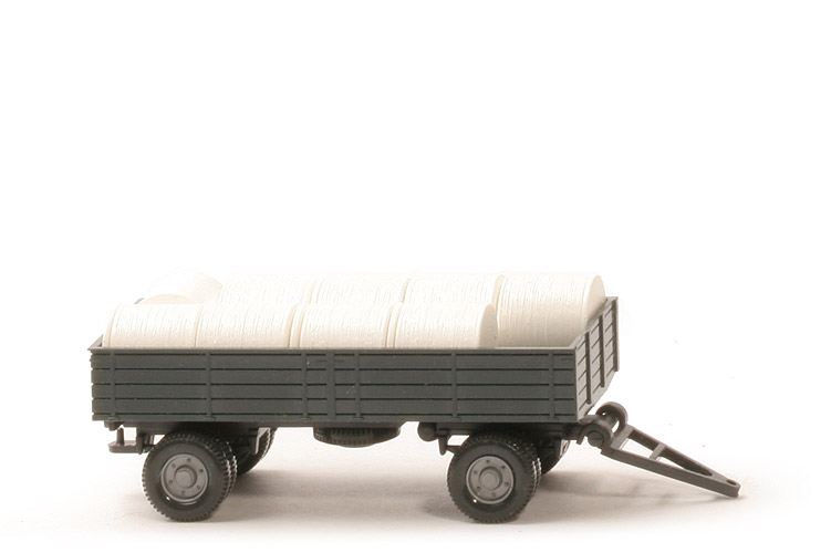 | | Pritsche | | Typ | 61 mm, Unterseite 4 Streben | | Farbe | schwarzgrün | | Pritscheneinlage | ohne | | Bodenprägung Pritsche | WIKING, Germany | | | Chassis | | Farbe | anthrazit | | Fixierung Drehschemel | per Weichzapfen | | Kotflügel | ohne | | Reserverad | mittig unter Chassis | | Zughaken | klein, integriert | | | weitere Details | | Ladung | Rundballen weiß, Durchmesser 12 mm | | Deichsel | anthrazit | | | Räder | | Typ | 11 mm, Felgen eingesetzt | | Felgen | 6-Loch, silbern |