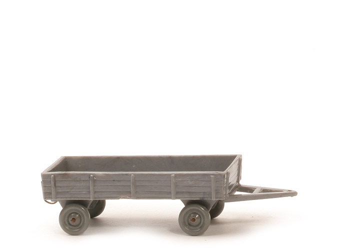 Achsen | Drahtachser | Farbe | staubgrau, schwarze Melierungen | Pritschenboden | glatt | Zughaken | Draht - heiß eingesetzt | Deichsel | starr | Deichselloch | klein | Bodenprägung | WM, Made in Germany | Bemalung Nummernschild | weiß | Räder | ca. basaltgrau |