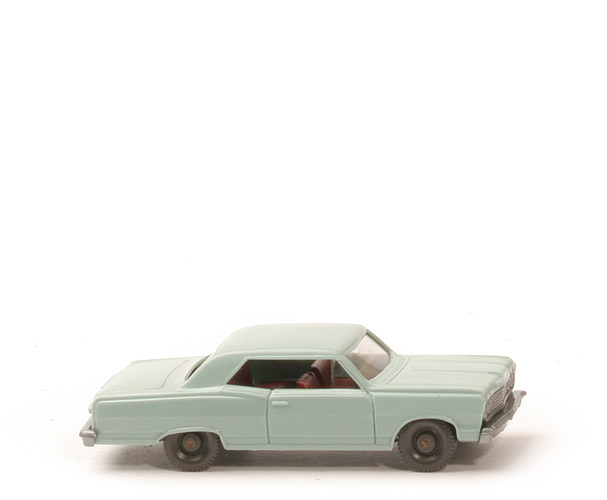 Farbe | dunkellichtgrün | Verglasung | klar | Inneneinrichtung | ca. weinrot | Lenkrad | separat eingesetzt, ca. hellelfenbein | Grill | Teil des Chassis | Chassis | silbern | Zughaken | ohne | Bodenprägung | 22 m, Wiking Germany | Bemalung | ohne | Räder Typ | Nabe glatt, anthrazit |
