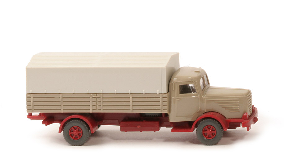 Kabine Farbe und Pritsche | gelbgrau | Blinker | mit | Bemalung Scheinwerfer | ohne | Bemalung Kennzeichen | ohne | Positionsleuchten | mit | Warndreieck | mit | Pritschenboden | grob strukturiert | Pritschenrückseite | Struktur wie Seite | Chassis | Version 6 | Farbe Chassis | hellbraunrot | Vorderachshalterung | ohne Steggravur | Chassis Bereich Trittbretter | geschlossen | Bodenprägung Verteilergetriebe | WM | hintere Achshalterung | offen | Auspuff | zur Beifahrerseite | Zughaken | ca. 3,0mm lang, 1,8mm stark | Rücklichtstange Beifahrerseite | mit | Bodenprägung hinten | 47s, GERMANY | Reserverad | vorne unter Pritsche | Bemalung Kennzeichen | ohne | Rückleuchte | mit, unbemalt | Plane | ca. grauweiß | Räder | 12mm, Profil grob | Felgen | Trilex, hellbraunrot |