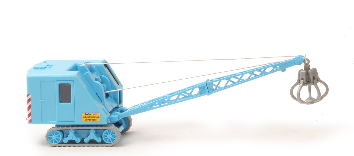 Oberwagen Oberteil | dunkles hellblau | Scheinwerfer an Oberwagen | mit, gesilbert | Rückleuchten an Oberwagen | mit, rot bedruckt | Verglasung | klar | Windeneinheit | einteilig, dunkles hellblau | Oberwagen Unterteil | dunkles hellblau | Ausleger | 2-teilig, dunkles hellblau, Teile gesteckt | Verseilung | filigranes Gummi weiß | Greifer | glasiges staubgrau | Verbindung Ober-/Unterwagen | gesteckt auf dünnem Zapfen | Unterwagen Oberteil | dunkles hellblau | Unterwagen Unterteil | dunkles hellblau | hier Bodenprägung | WM (altes WIKING-Logo) | Laufräder | dunkles hellblau | Gummiraupen | ca. silbergrau | Beschriftung Seite | Schild "Aufenthalt im Fahrenbereich verboten!" | Beschriftung Heck | Krupp Logo, "Krupp Ardelt" | Warnbaken | rot/weiß gedruckt |