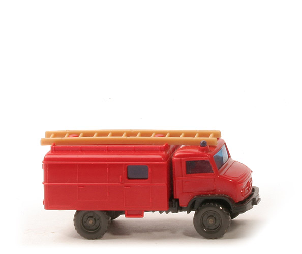 Farbe Kabine | rot | Version Kabine | geschlossen | Dach | mit zwei Warnlichtaufnahmen | Blaulicht | zwei, Teil der Verglasung | Verglasung | blau-transparent | Bemalung Kabine | ohne | Chassis Farbe | schwarz | eingesetzte Kardaneinheit | basaltgrau | Chassis Typ | vor Hinterachse geschlossen | Bodenprägung | WM und GERMANY | Zughaken | entfernt | Tanks, Luftbehälter | unten geschlossen | Reserverad | ohne | Aufbau Farbe | rot, verklebt | Leiter | gesteckt, beige | weitere Bemalung | keine | Räder | 10mm, grobstollig | Farbe Räder | anthrazit |