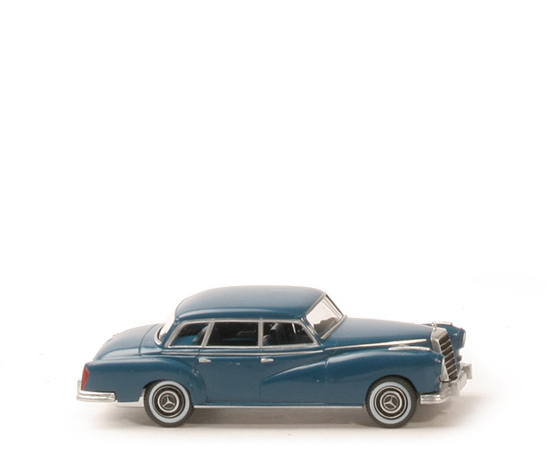 Farbe Karosserie | "grünblau" Klarlack | Holme | mit | Bemalung Scheinwerfer | silbern | Bemalung Blinker vorne | silbern | Bemalung Rückleuchten | rot | Bemalung Kennzeichen hinten | ohne | Grill | silbern lackiert, schwarz hinterlegt, mit Stern | Verglasung | klar | Inneneinrichtung | "grünblau", Lkr integriert | Chassis Farbe | silbern lackiert | Achshalterungen | offen | Zughaken | ohne | Bodenprägung | neues WIKING-Logo | Räder Art | 8 mm, mit MB Stern, als Weißwandreifen |
