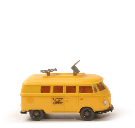 Farbe Karosserie oben | gelb | Farbe Karosserie unten | gelb | Heckscheibe | groß | Chassis Ausführung | separates Bauteil | Dach | mit Streben | Antennen | silbern, drehbar eingesteckt | Verglasung | leicht getönt | Inneneinrichtung | ohne | Chassis Farbe | schwarz | Bodenprägung | Wiking Germany | Beschriftung | großes Posthorn ca. 5,5 mm | Beschriftung Art | Folie | Bemalung vorne | Scheinwerfer silbern | Bemalung hinten | ohne | Räder | anthrazit, 8 mm |