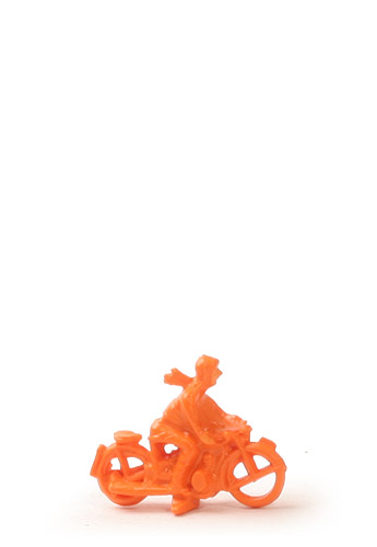 Zweite Edition aus dem "kleinen WIKING-Laden" von Michi Bloeßl: Porsche 911 und dieser Motorrad- fahrer in Komplementärfarben.