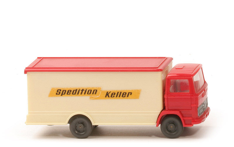 Farbe Kabine | dieses glasige rot | Spiegel | ohne | Verglasung | klar | Grill | silbern eingesetzt | Bemalung vorne | ohne | Inneneinrichtung | 2 Sitze, Motorblock | Armaturenbrett, Lenkrad | ohne | Farbe Innenrichtung | ca. lichtgrau | Chassis Farbe | schwarz | Chassis Bodenprägung | GERMANY, WM | Zughaken | ohne, entfernt | Reserverad | hinten unter Chassis gesteckt | Bemalung Rückleuchten | ohne | Aufbau Typ | flacher Koffer | Farbe Koffer | creme | Farbe Türen | creme | Farbe Kofferdach | rot | Koffer Bodenprägung | 43 m | Beschriftung | Spedition Keller ... (siehe Foto) | Beschriftung Art | Papieraufkleber | Räder | 11mm, Standard |