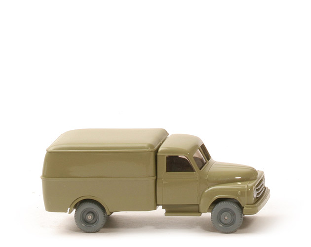 Aus der PMS-Packung WIKING-Verkehrs-Modelle Nr. 76. Das "Resedagrün" entspricht nicht dem der Farbkarte von Holger Wanner. Recht schmuckloses Modell. Dafür wunderbar fein gedruckter Schriftzug "Hanomag" über dem Grill. |