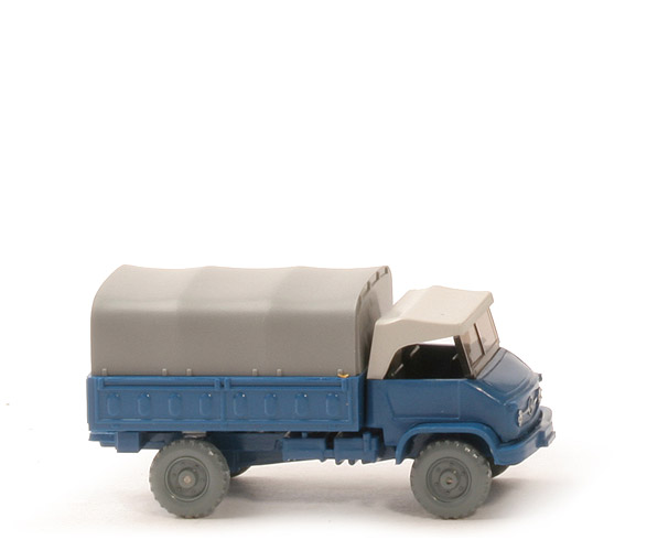 Aus der PMS-Packung WIKING-Verkehrs-Modelle Nr. 75. Modell wie aus der Packung 5 Jahre Unimog-Community (2004). Das Modell hat in der Neuauflage ein (Bus-) Lenkrad, das neue WIKING-Logo und einen dünnen Zughaken. Das Faltdach ist an den Seiten nun faltenfrei und die Plane hat keine Innenprägung mehr. |