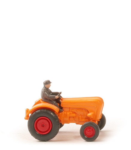 Aufbau | orangegelb | Bodenprägung unter Hinterachse | spiegelverkehrte 2 | Verstärkung neben Fahrersitz | mit | Vorderachsportal | dünn | Scheinwerfer | groß, unbemalt | Zughaken | stark | Lenkrad | anthrazit, 3 Speichen | Fahrer | basaltgrau | Räder | anthrazit | Felgen vorne | ohne Radmuttern | Felgen hinten | geschlossen | Felgenfarbe | rot |