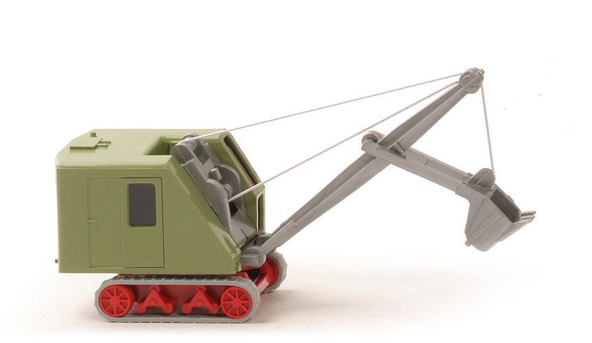 Oberwagen Oberteil | ca. resedagrün | Scheinwerfer an Oberwagen | mit | Rückleuchten an Oberwagen | mit, rot bemalt | Verglasung | stark getönt | Windeneinheit | einteilig, silbern | Oberwagen Unterteil | silbern | Ausleger | silbern | Quersteg am Ausleger | mit | Löffelstiele und Löffel | silbern | Verseilung | filigranes Gummi weiß | Verbindung Ober-/Unterwagen | gesteckt auf 3 mm - Zapfen | Unterwagen Oberteil | ca. blassrot | Unterwagen Unterteil | ca. blassrot | hier Bodenprägung | neues WIKING-Logo | Laufräder | ca. blassrot | Gummiraupen | ca. silbergrau | Warnbake | ohne | Beschriftung Heck | Krupp-Logo, "Krupp Ardelt" silbern |