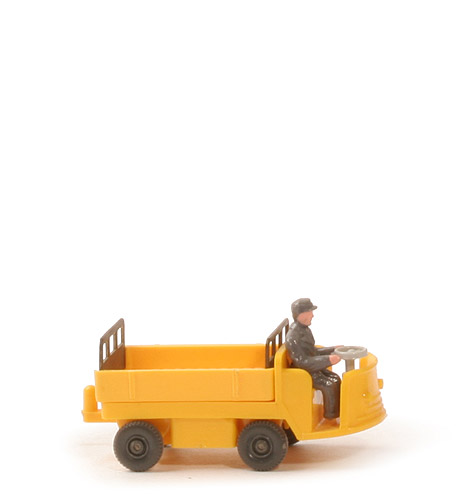 Aufbau | gelb | Fahrer | ca. basaltgrau | Lenkrad | ca. lichtgrau, 3-speichig | Bodenprägung | WM, Germany, 116 | Zughaken | integriert | Batteriekasten/Achshalterung | gelb | Aufsatz mit Messingwänden | mit | Bemalung | ohne | Räder | ca. 6 mm, anthrazit |