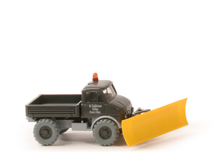 Farbe Kabine | umbragrau | Verglasung | klar | Inneneinrichtung | schwarz, Lkr eingesetzt, schwarz | Bedruckung Türen | "N.C. Lambertsen, Tiefbau, Preetz/Holst." | Bedruckung Front | Scheinwerfer, Stern, Zielinien silbern | Halterung Schneepfug | umbragrau | Räumschild | gelb | Chassis Farbe | silbergrau | Bodenprägung | 370, neues WIKING-Logo | Kardanelement Farbe | silbergrau | Reserverad | 11 mm, auf Chassis | Pritsche | umbragrau | Pritscheneinlage Typ | 6 Längsstreifen und trapezförmige Gravur | Pritscheneinlage Farbe | umbragrau | Räder | 12 mm, grobstollig, ca. staubgrau, separate Felgen | Felgen | 6-Loch, umbragrau |
