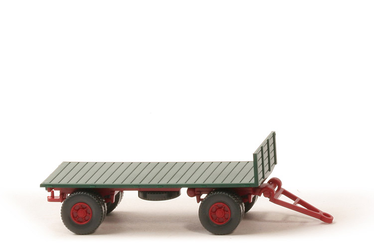 | Pritsche | Typ | Flachpritsche | Farbe | "moosgrün" | Pritscheneinlage | ohne | Bodenprägung Pritsche | neues WIKING-Logo, Germany | | Chassis | Farbe | ca. rubinrot | Fixierung Drehschemel | per Weichzapfen | Kotflügel | ohne | Reserverad | mittig unter Chassis | Zughaken | klein, integriert | Deichsel | ca. rubinrot | | Räder | Typ | 12 mm, Felgen eingesetzt | Felgen | Trilex neu, ca. rubinrot | | Link zu passenden Zugwagen | MB LP 1519 mit Flachpritsche | | Unimog | |